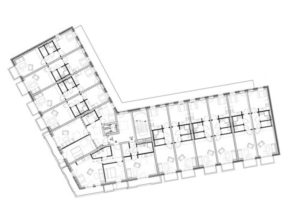 Das Erdgeschoss verfügt über zwei Townhouse-Wohnungen, die sich über zwei Geschosse erstrecken und wie Reihenhäuser konzipiert sind. In den weiteren Geschossen befinden sich 1 – 4-Zimmerwohnungen. Das Kellergeschoss verfügt über ausreichend Abstellflächen, darunter einen Kinderwagen- und Fahrradraum sowie eine Tiefgarage mit 20 Stellplätzen.